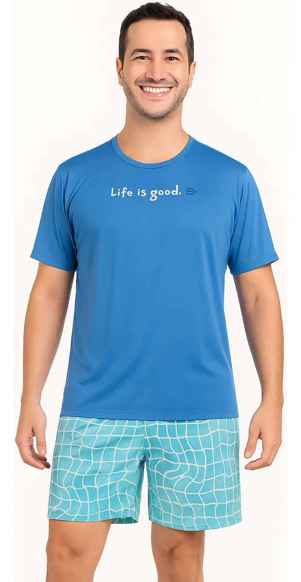O Pijama Masculino Premium Camisa Manga Curta “Life Is Good” + Short Quadriculado Azul Turquesa foi pensado para homens que valorizam qualidade, visual moderno e bem-estar em cada momento de descanso. A camiseta com manga curta na tonalidade azul vibrante transmite energia, e o short com caimento leve completa o conjunto com liberdade e estilo.